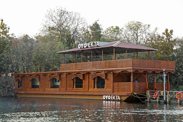 OYO EKTA is first and only of its kind houseboat in Gujarat located on the pristine Narmada river. The ultra luxurious houseboat can host up to 6 guests in its two bedrooms, fully equipped with all modern amenities, and has an inhouse kitchen to serve you with authentic Gujarati cuisine.